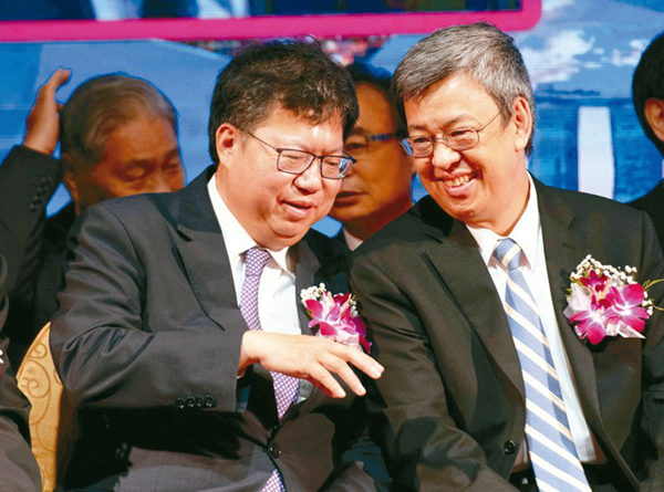 陳建仁(右)接任臺行政主管部門負(fù)責(zé)人,前桃園市長鄭文燦任其副手。(圖片來源:臺灣《聯(lián)合報(bào)》)