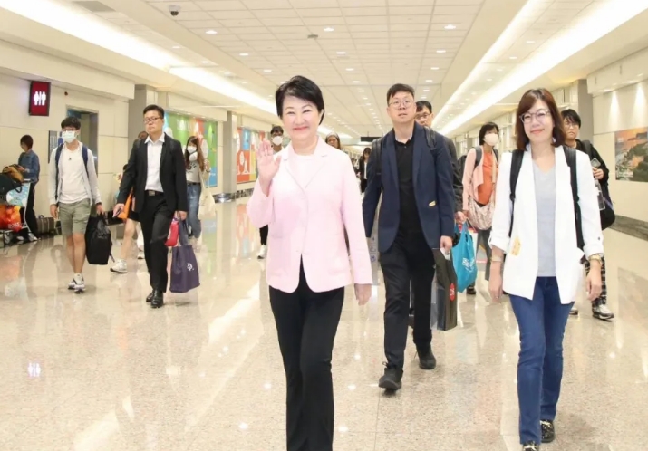 臺(tái)中市長(zhǎng)盧秀燕于31日凌晨返臺(tái)。(圖片來(lái)源:臺(tái)灣“中廣新聞網(wǎng)”)