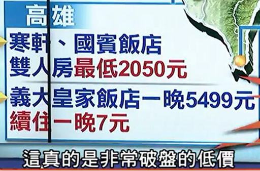 又比如,高雄的某飯店若要續住一晚僅需7元……