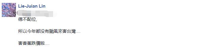 有網(wǎng)友劍指蔡英文大位,直指是蔡當(dāng)局“德不配位”,蕉農(nóng)才遭遇了“香蕉危機”,同時“躺槍”的還有民進(jìn)黨的“錢沾”和“新南向”: