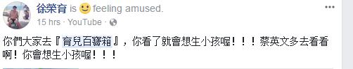 臺灣前行政管理機構發言代表鄭麗文也直言:“育兒百寶箱”是在亂花錢,真正的價值或許就是為了陪襯“前瞻計劃”中被罵得一文不值的輕軌建設吧;更說蔡當局根本沒有意識到臺灣“少子化”問題的嚴重性!