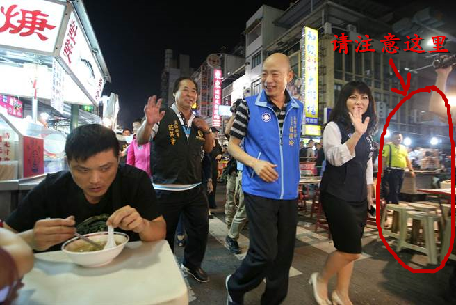國民黨高雄市黨部主委韓國瑜8日晚率國民黨籍議員在六合夜市主委莊其章陪同下到六合夜市逛了一圈,結果你猜怎么著?攤商比逛夜市的人還多,擺在中間的長桌、椅凳更是一片空蕩。