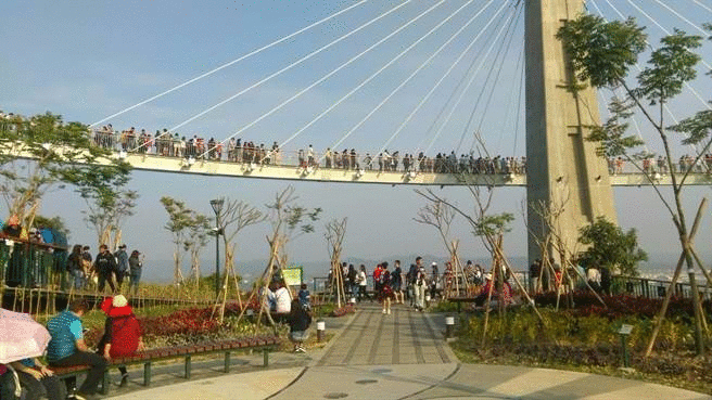 據(jù)臺媒報道,崗山之眼是高雄第一座天空廊道,耗資1億多新臺幣打造,除了獨特的小提琴頭弦柱外型設(shè)計迷人以外,登高更能遠(yuǎn)眺到臺灣海峽、北大武山、阿公店水庫,甚至高雄港、85大樓等標(biāo)志性建筑,不管是湖光山色還是港口風(fēng)情都能盡收眼底,故而在春節(jié)期間正式營運后便吸引了逾5萬名游客到訪,成了最受歡迎的新地標(biāo)。