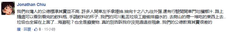 崗山之眼的不文明游客行徑一經(jīng)曝光便引發(fā)了許多臺灣網(wǎng)友的談?wù)摚?strong>其中很大一部分人認(rèn)為臺灣人的公德標(biāo)準(zhǔn)確實不高,需要改進(jìn),“臺灣人本來就沒有比較優(yōu)越,作過服務(wù)業(yè)的就知道”、“以前在機(jī)構(gòu)服務(wù)最討厭的就是臺灣人”。