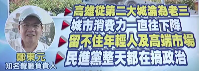 此外,在受訪時鄭東元還指出了高雄如今面臨的幾大問題:從過去全臺第二大城淪為老三,城市整體消費力持續下滑,留不住年輕人及高端市場……他直言,如今高雄的經濟出現了嚴重問題,而民進黨卻整天忙著搞政治,根本不關注基層百姓的經濟民生及招商引資,痛批“民進黨只會拼政治,不會拼經濟”!