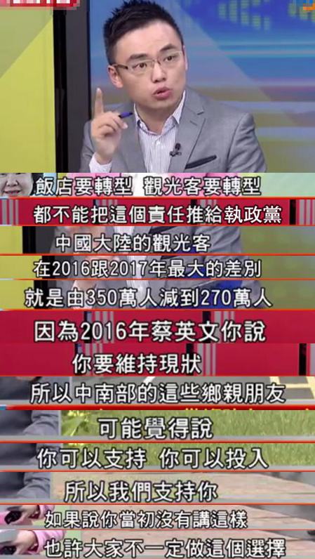 來看看這位民進黨議員是如何為“鐵票倉跳票”作解釋的吧:民進黨曾批判馬英九是“數字治臺”,而這個綠營小姐姐一上來就先祭出“數字陣”,說從經濟指數上看,民進黨與馬英九執政時期好很多了啊;之后拿出“甩鍋招”,說飯店倒閉有很多方面的原因啊,店家不要都怪到民進黨身上,你們自己也要轉型啊;接著開始“數政績”,說陸客雖然不來了,但日本和東南亞客人有增加啊,而且像臺中市長林佳龍之類的也有積極的幫地方在招商啊;最后搬出“誠懇臉”,表示雖然民進黨做了很多“復興經濟”的事,但若人民感受不到,那蔡當局也會“好好檢討”……
