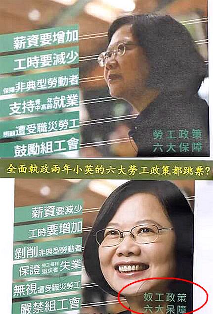 想當年,蔡英文靠著“勞工是民進黨心里最軟的那一塊”的“告白”成功俘獲島內的勞工大軍,如今民進黨當局上臺即將屆滿兩年,回看曾在競選時提出“18項勞動政見”、“6大勞工政策保障”支票的蔡英文,現在到底兌現了多少呢?