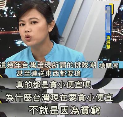 從“衛生紙之亂”到“499之亂”,為何臺灣民眾動輒就會陷入如喪尸般的瘋搶熱潮中呢?難道是因為寶島的小伙伴們都愛貪小便宜?當然不是,還不是因為——貧窮!國民黨臺北市議員擬參選人游淑慧如是指出。