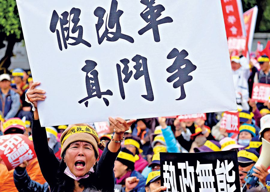 要知道蔡英文當局全力推行的年金改革,理論上應(yīng)該是“全民”年金改革;不過在實際操作上,蔡英文卻把手術(shù)刀直接割向傳統(tǒng)國民黨“鐵票”群體——軍公教警消的頭上。而對于占比最大、金額最多的勞工群體,由于正值選舉年,蔡英文則遲遲不敢動手。