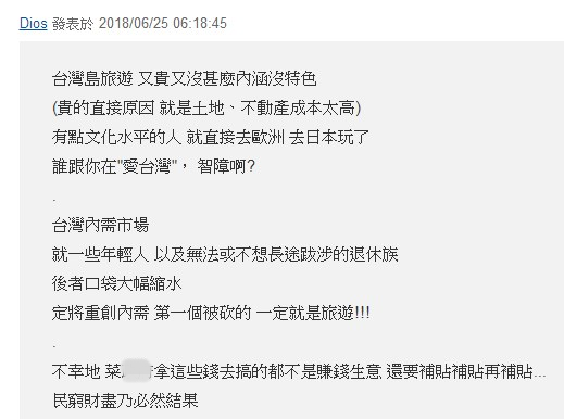 旅游業(yè)在臺灣經(jīng)濟中的比重一直很可觀,且旅游業(yè)涉及到的行業(yè)及人數(shù)相當龐大,可以說,旅游業(yè)的興衰將直接影響很多臺灣老百姓的實際生活水平。在大陸游客驟減,島外旅游收入連年減少的大背景下,臺當局強力推動的“年金改革”,讓島內(nèi)旅游也大幅縮水,好巧不巧的起到了“火上澆油”的效果。