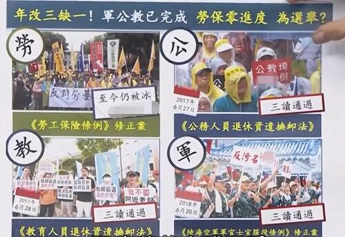 繼軍改21日“三讀”通過后,加上去年已完成“修法”的公務員及教師年金改革,臺灣軍公教的年改都已完成并確定7月1日將正式一同上路。但不少人卻質疑,比起軍公教,勞保年改才是當務之急吧,那為何關于勞改的《勞工保險條例》修正案,迄今還被冰在“立法院”?