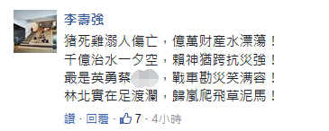 對此,臺灣資深媒體人鄭師誠怒酸說,洪水都退一大半了,蔡女士才想起來心中“最軟的一塊兒”?坐著裝甲車出來視察,是要擺駕大馬路讓災民景仰嗎?