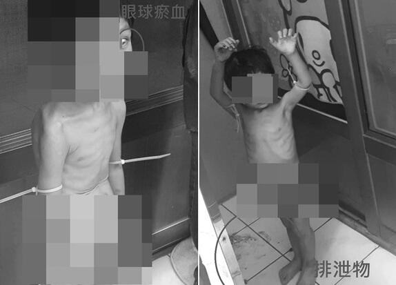 警方指出,此次遭虐的是二人年僅3歲的么兒,該男童有輕微行為障礙、學習遲緩。當天生母前往家中探視,沒想到卻見兒子全裸在陽臺罰站,雙手還綁著束帶、繩子,且全身不但有大小瘀青,還瘦成皮包骨,兩邊的肋骨清晰可見,一被放下后竟急著撿地上排泄物吃,媽媽當場失聲痛哭。