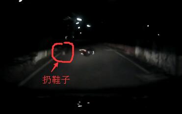 沒想到該女子竟不死心,先是向左翻了一圈,眼見原PO沒反應,又向右滾了兩圈,還一手將鞋子丟出,想營造車禍現場,但原PO依舊完全不為所動……后來女子實在演不下去了,加上場面太尷尬,只好起身小跑步逃離現場。過程中,女子一度想轉身撿回鞋子,但見原PO還在,只好頭也不回繼續跑,最后消失在黑暗中。