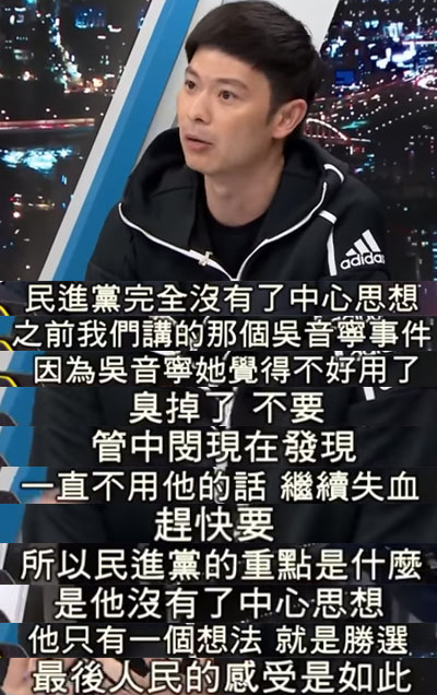 針對蔡英文當(dāng)局頻頻轉(zhuǎn)彎的做法,國民黨準(zhǔn)臺北市議員李柏毅甚至表示,民進(jìn)黨已經(jīng)失去了自己的“中心思想”,“看到吳音寧不好用,轉(zhuǎn)手丟掉;看到管中閔不用不行,就趕快要。這樣的民進(jìn)黨只有一個(gè)想法,那就是勝選,民眾的感受就是如此。”