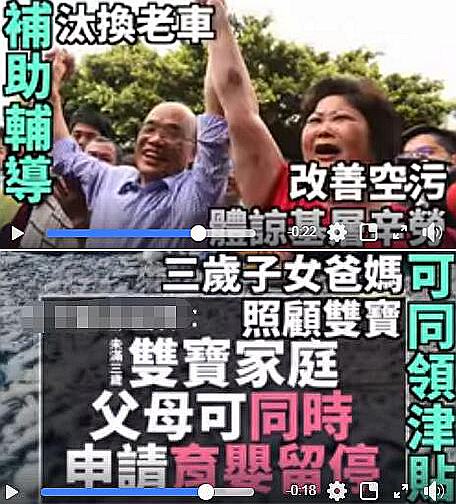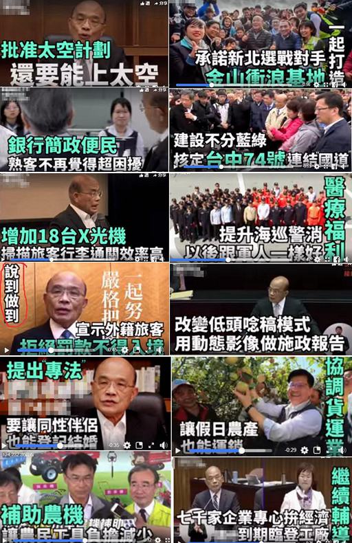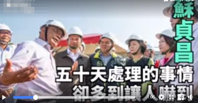 都鋪墊好后,影片便開啟了“旋風式”夸獎的模式,細數(shù)了“沖沖沖”“院長”蘇貞昌上任以來的一系列政績!