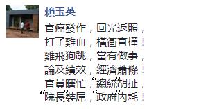 3月3日晚,蘇貞昌在自己的臉譜網(wǎng)上自稱公布了一則名為《沖沖沖的五十天》的政績影片,這支短片雖然只有1分20秒,但信息量那是相當相當大的啊:影片用Google小姐語音念旁白,細數(shù)了蘇“內(nèi)閣”50天的驕人政績。