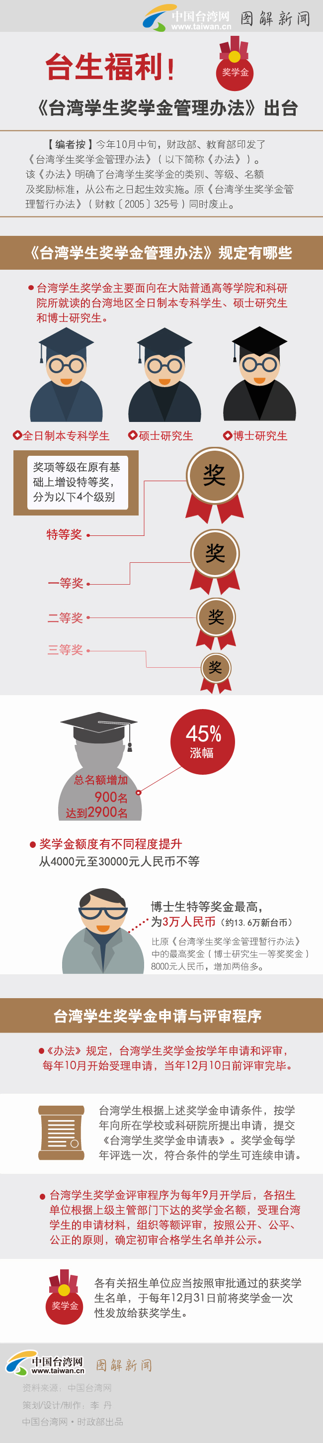 【編者按】今年10月中旬,財(cái)政部、教育部印發(fā)了《臺灣學(xué)生獎學(xué)金管理辦法》(以下簡稱《辦法》)。該《辦法》明確了臺灣學(xué)生獎學(xué)金的類別、等級、名額及獎勵標(biāo)準(zhǔn),從公布之日起生效實(shí)施。原《臺灣學(xué)生獎學(xué)金管理暫行辦法》(財(cái)教〔2005〕325號)同時廢止。