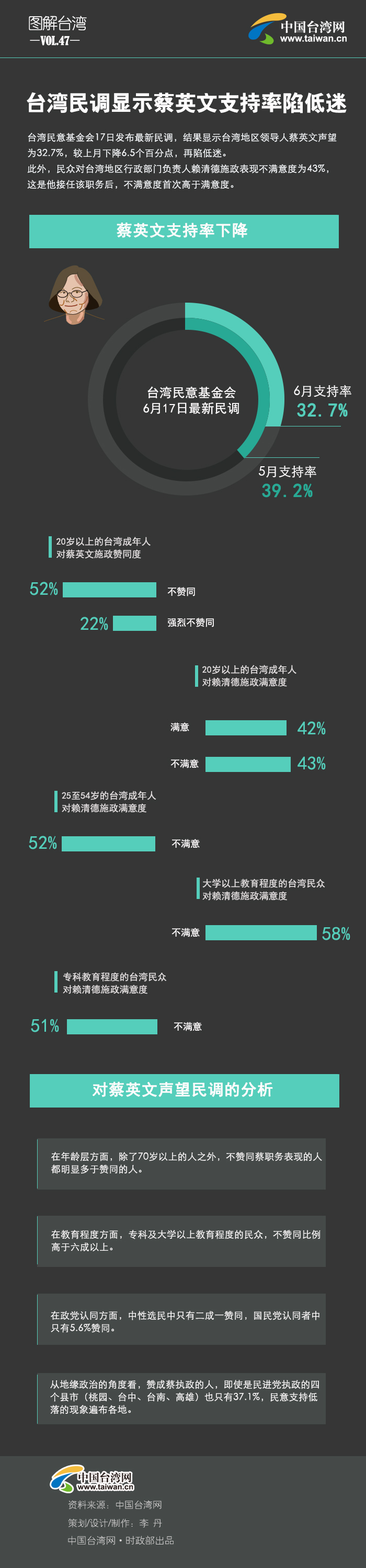 【圖解臺灣】臺灣民調顯示蔡英文支持率陷低迷