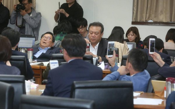 民進(jìn)黨與國民黨昨日都發(fā)布甲級動員。據(jù)臺灣《中時電子報》報道,會議室一早就被動員的“立委”、聯(lián)席會官員、各家媒體塞滿,有“立委”反應(yīng)沒有位置坐。“時力立委”徐永明一開始就占據(jù)質(zhì)詢臺不走,要求更換更大的會議室。