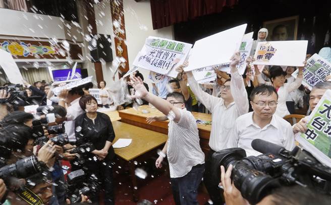 臺(tái)“立院”早前上演水球大戰(zhàn)。(圖片來源:臺(tái)灣《中時(shí)電子報(bào)》)