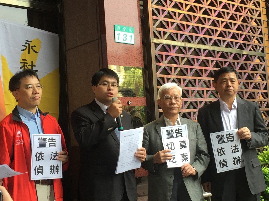 永社、臺灣北社、臺灣教授協會委請律師黃帝穎(左二)告發馬英九。(圖片來源:臺灣《聯合報》)