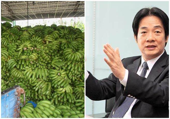 賴清德(右圖)推薦香蕉新吃法,生香蕉帶皮水煮后,搭配醬油、大蒜吃。(圖片來源:臺灣《中時電子報》)