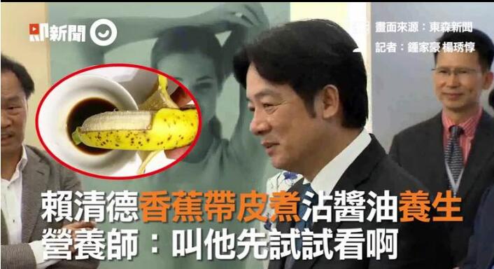 賴清德推“水煮香蕉帶皮沾醬油”新吃法。(圖片來源:臺灣“東森新聞云”)