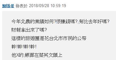 臺北市府官員表示,北農今年以來營利狀況呈現(xiàn)衰退,不過對于董事會的參訪行程卻比過去大手筆,12天的行程還可攜帶眷屬同行,全部由北農買單。