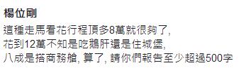 根據承攬行程的旅行社規(guī)劃,一行人來回搭長榮班機,去程從荷蘭入境,最后由法國離境。每晚住宿飯店皆安排位于市中心的4星級酒店,像是在巴黎入住4晚的拉德芳斯萬麗酒店,每晚要價8000多元。而吳音寧一行抵達荷蘭隔天即安排考察紅燈區(qū),有人質疑,未來臺灣果菜市場是要規(guī)劃結合性產業(yè)觀光區(qū)?
