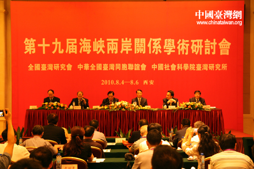 中國(guó)臺(tái)灣網(wǎng)8月4日西安消息 以“ECFA與兩岸關(guān)系發(fā)展之展望”為主題的第十九屆兩岸關(guān)系學(xué)術(shù)研討會(huì),8月4日在西安隆重開(kāi)幕。來(lái)自海峽兩岸的百余位專家學(xué)者齊聚一堂,共同展望新形勢(shì)下兩岸關(guān)系發(fā)展前景。本次研討會(huì)在兩岸簽署經(jīng)濟(jì)合作框架協(xié)議的背景下,圍繞兩岸經(jīng)濟(jì)發(fā)展趨勢(shì)、兩岸文教交流的現(xiàn)狀與發(fā)展,以及其他相關(guān)議題進(jìn)行研討,具有十分重要的現(xiàn)實(shí)意義。