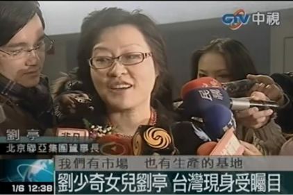 據(jù)悉,劉亭原名劉婷婷,系劉少奇與王光美之女,1952年生,1986年獲得美國哈佛大學(xué)哈佛商學(xué)院工商管理碩士學(xué)位;曾就職于美國洛克菲勒公司,現(xiàn)為聯(lián)亞集團(tuán)董事長兼總裁、北京聯(lián)亞投資公司董事長兼總裁、中貿(mào)圣佳國際拍賣有限公司董事長。(中國臺(tái)灣網(wǎng) 陳佳慧)