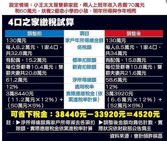 4口之家繳稅試算。圖片來源:臺灣媒體