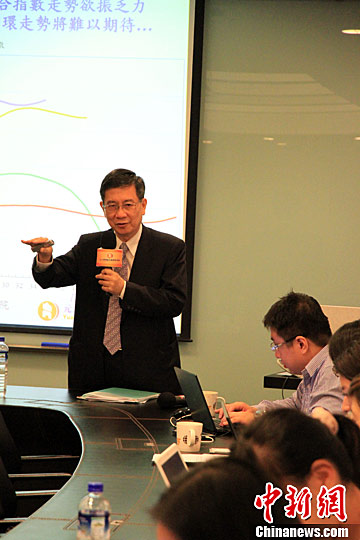 9月30日,臺灣元大寶華綜合經(jīng)濟研究院在臺北發(fā)布2016年臺灣經(jīng)濟預(yù)測,將經(jīng)濟增長率從0.9%上修至1.1%。知名經(jīng)濟學(xué)者、該院董事長梁國源稱,臺灣經(jīng)濟恐淪為時有時無的“快閃式復(fù)蘇”,就像燈泡亮了一下,但會不會繼續(xù)亮并不知道。中新社記者 徐德金 攝