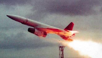 1993年,掛上“介山”發(fā)動機(jī)的靶機(jī),在臺軍九鵬基地成功試飛,成為臺軍巡弋飛彈的動力來源;在這之前的中流飛彈,則采用遙控靶機(jī)的外型設(shè)計,可達(dá)上百公里射程,是至今才曝光的臺軍秘密計劃。圖片來源:臺灣《聯(lián)合報》