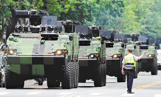 中國臺灣網(wǎng)5月29日消息 據(jù)臺灣《聯(lián)合報》報道,臺當局領(lǐng)導人馬英九昨天首次搭乘臺軍“云豹”裝甲車,從其辦公地點前往位于臺北市大直的“政軍指揮中心”參加“政軍兵棋推演”。