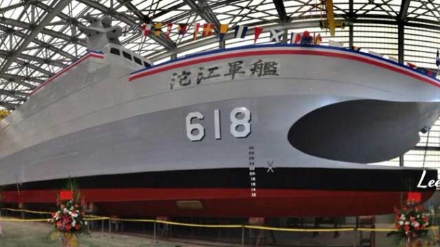 臺灣《自由時報》3月15日報道稱,由臺灣造船廠建造,隱身性能高的首艘導彈巡邏艦“沱江軍艦”,14日在蘇澳龍德造船廠舉行命名擲瓶典禮,同級軍艦未來將興建8至12艘,單艦配備多達16枚遠程反艦導彈,打擊火力極為強大,有助提升臺灣在臺海及南海海域的制海戰力。