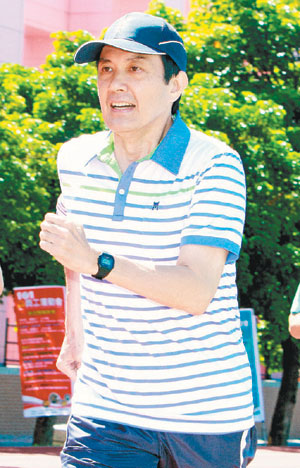 一項健檢資料分析結果顯示,多運動可讓“健康年齡”比實際年齡年輕10歲。幾乎每天跑步運動的馬英九(右),在醫師看來“健康年齡”比實際年齡年輕近10歲。圖片來源:東南網