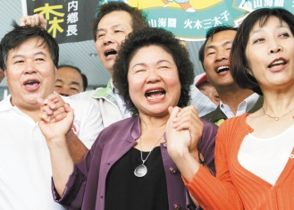 大高雄市長(zhǎng)初選陳菊篤定出線,難掩喜悅,笑臉滿盈。圖片來(lái)源:臺(tái)灣《聯(lián)合報(bào)》