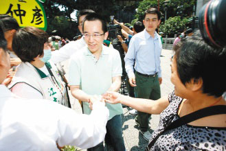 綜合臺(tái)灣媒體報(bào)道,陳水扁之子陳致中7日北上臺(tái)北,陪同民進(jìn)黨臺(tái)北市議員參選人童仲?gòu)┰谌f華艋舺一帶掃街拜票,雖然扁家最近匯回1億多新臺(tái)幣,但對(duì)于11日扁案二審宣判,阿扁能否交保,陳致中也無把握,連說了三次“希望父親早日回家團(tuán)圓”。此外,陳致中還于一早去龍山寺上香祈福。