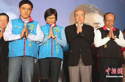臺灣“五都” (臺北市、新北市、大臺中市、大臺南市和大高雄市等五大“直轄市”)“三合一”(市長、市議員及里長)選舉于11月27日舉行。在開票之后,國民黨參選人郝龍斌宣布當選臺北市長。圖為郝龍斌帶領全場一起閉目合十為前日遭槍擊的連勝文祈禱。中新社記者 關向東 攝