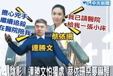 為了避免丈夫胡思亂想,獨自承擔太大的精神壓力,蔡依珊向臺大醫院申請了一張小床,想依丈夫的要求放在他的病房隨侍在側。蔡依珊表示,她現在已入院,晚上睡覺都會緊緊牽住連勝文的手;但這幾天她做夢老是夢到槍手,尖叫嚇醒。(中國臺灣網 馮存。