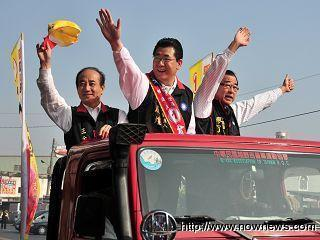 臺“立法院長”王金平(左)陪高雄市“立委”補選國民黨候選人徐慶煌掃街。