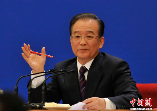 3月14日,國務院總理溫家寶在北京人民大會堂與中外記者見面,并回答記者提問。中新網記者 楊磊攝