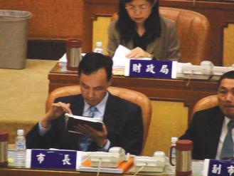 新北市議會(huì)昨天因民進(jìn)黨議員聯(lián)合質(zhì)詢時(shí)的杯葛,空轉(zhuǎn)一天,市長朱立倫枯坐等候時(shí),以i-pad查詢資料打發(fā)時(shí)間。