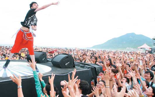 中國臺灣網7月10日消息 據臺灣《聯合報》報道,臺灣第十一屆貢寮國際海洋音樂祭昨天登場,首日由蘇打綠樂團、神棍樂團和歌手盧廣仲、張震岳輪番上場,從白天唱到黑夜,high翻滿場粉絲。臺北縣政府估計昨天約15萬人涌進臺北縣福隆海水浴場。