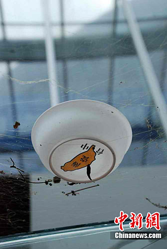 10月18日,臺(tái)灣藝術(shù)家攜世界最薄瓷碗?yún)⒄埂?010中國(guó)景德鎮(zhèn)國(guó)際陶瓷博覽會(huì)”, 參展薄胎瓷碗最薄處僅為0.17毫米,重量更是只有幾克。瓷博會(huì)現(xiàn)場(chǎng),主辦方將薄胎碗置于蜘蛛網(wǎng)上展示,引來(lái)眾多參觀者嘖嘖稱(chēng)奇。王劍 攝