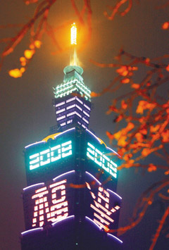 中國臺灣網2月4日消息 據臺灣《聯合報》報道,農歷年腳步已近,臺灣各地已聞到過年的氣氛,臺北101大樓秀出“春”、“福”字樣向市民拜年,在夜晚別有一番風味。(周先)