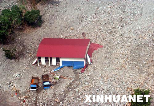 臺風“莫拉克”重創南臺灣,山川變色,昔日迷人的峻嶺峭壁、溪流瀑布瞬間就成為駭人的“魔鬼”。位于高雄縣北部的那瑪夏鄉大量房屋與農田被泥石流沖毀,對外交通阻斷。新華社發