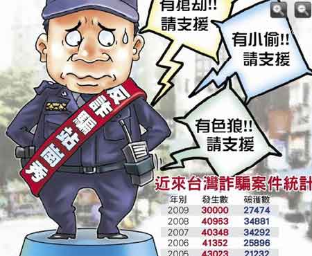 臺“行政院長”吳敦義11日啟動“打擊詐騙大行動”,今天反詐騙活動日計劃出動11602名警力,22452名義警、志工,上午8時到午夜12時共16小時,輪流在全臺13655個自動提款機附近巡守,并發放反詐騙文宣。